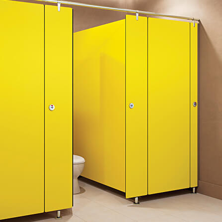 Our Elegance Partitions are constructed of 13mm thick Phenolic, which is non-porous, water-resistant, impact and scratch resistant, and available in a range of standard and custom colors.