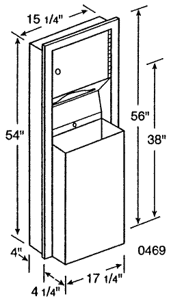 - Removable 12 gal. (46 L) stainless steel waste receptacle is locked into cabinet.